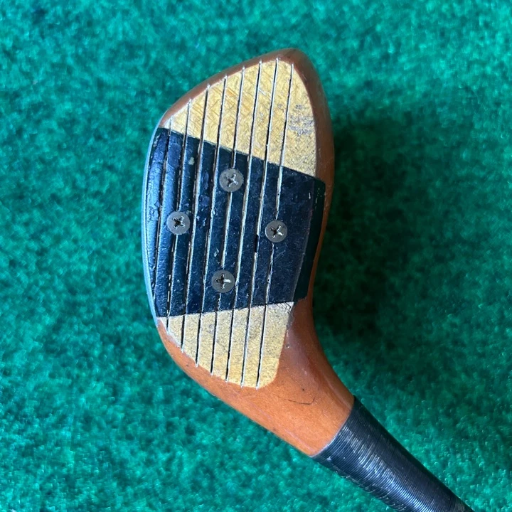 Vintage persimmon driver in good condition. Face shows little wear for its age and crown has a few nicks but nothing major. True Temper Dynamic S-flex shaft. Grip is old and cracked – can re-grip of the price is right.